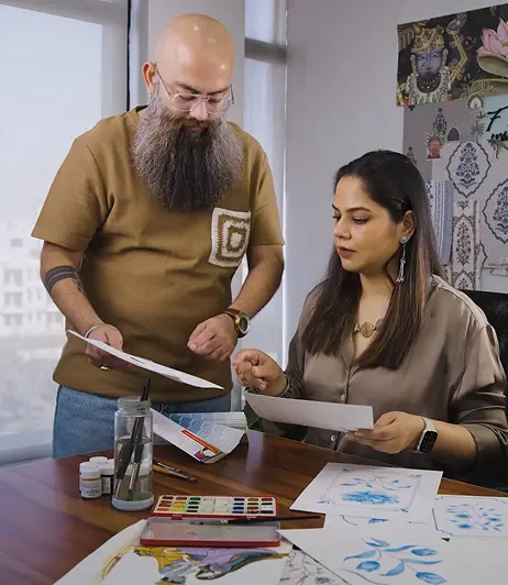 Our work draws from India’s rich artistic traditions—Pichwai, Mughal, Gond, temple architecture, and more—reimagined through a contemporary lens to create designs that feel layered, timeless, and culturally rooted.