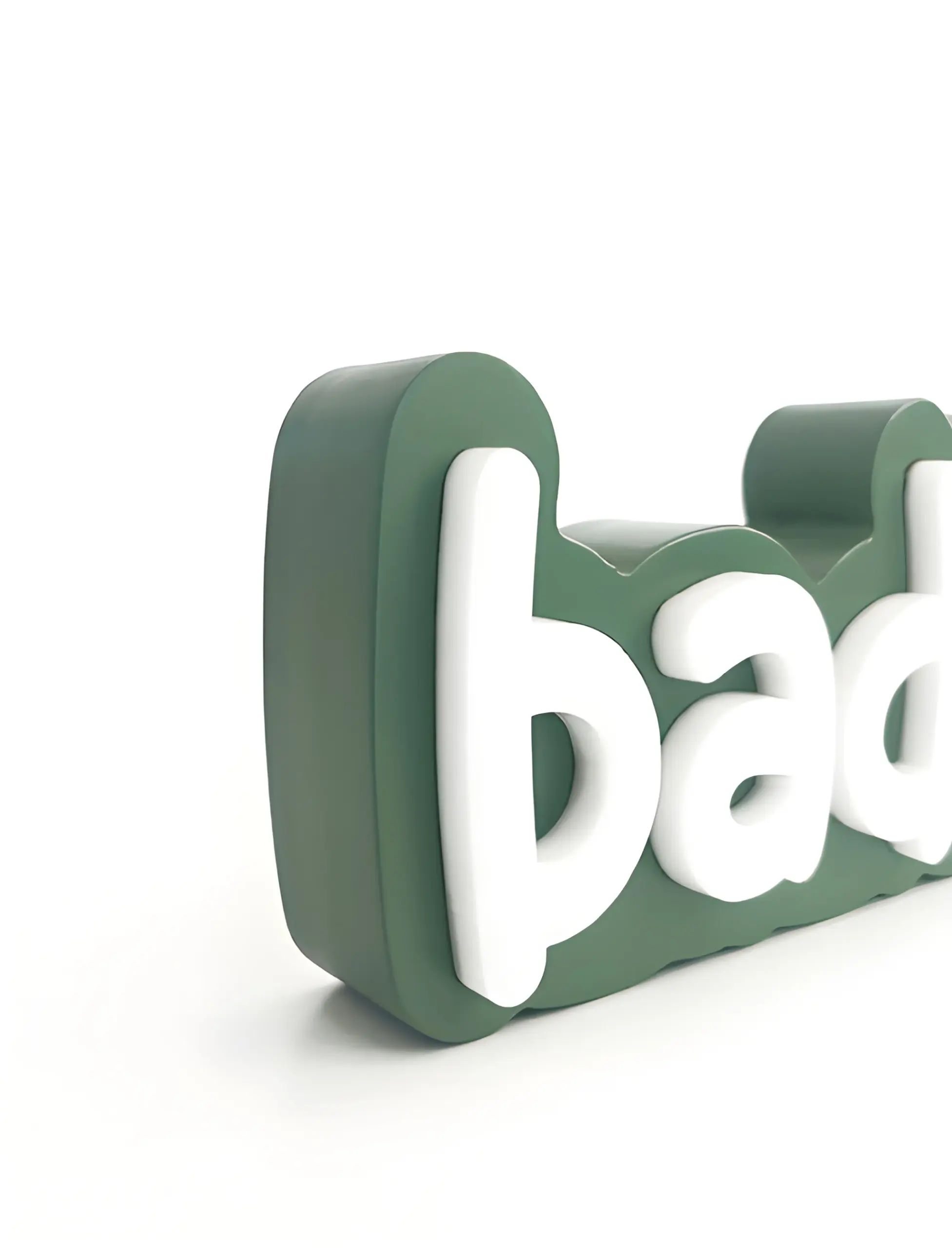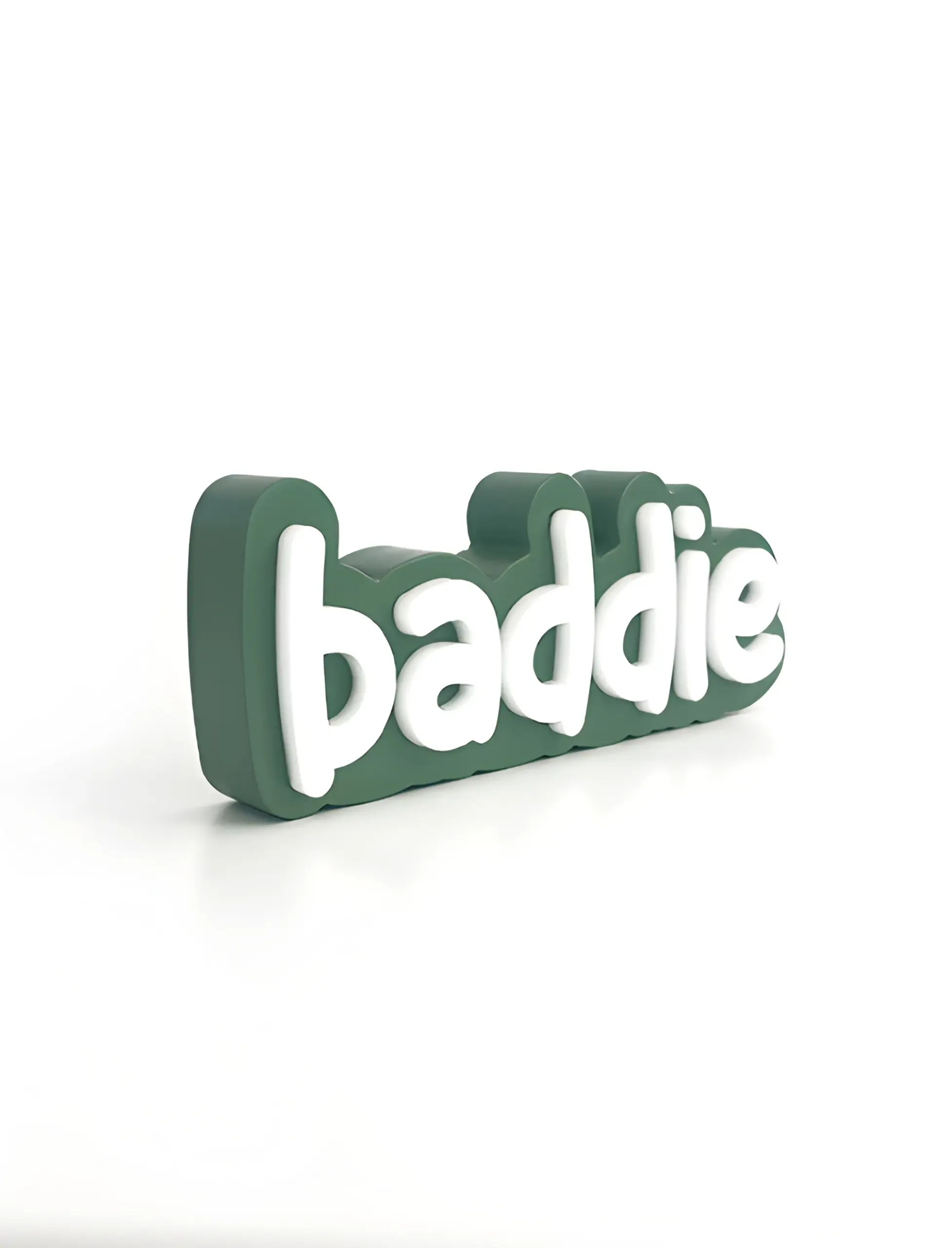 Smooth matte surface with precise, layered lettering in premium acrylic.