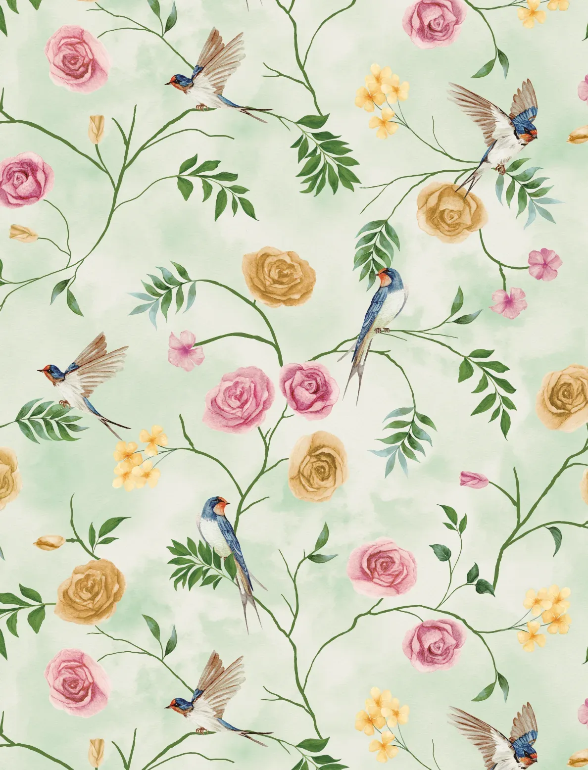 A soft pastel pattern with graceful, swirling forms that evoke a sense of movement and delicate elegance.
