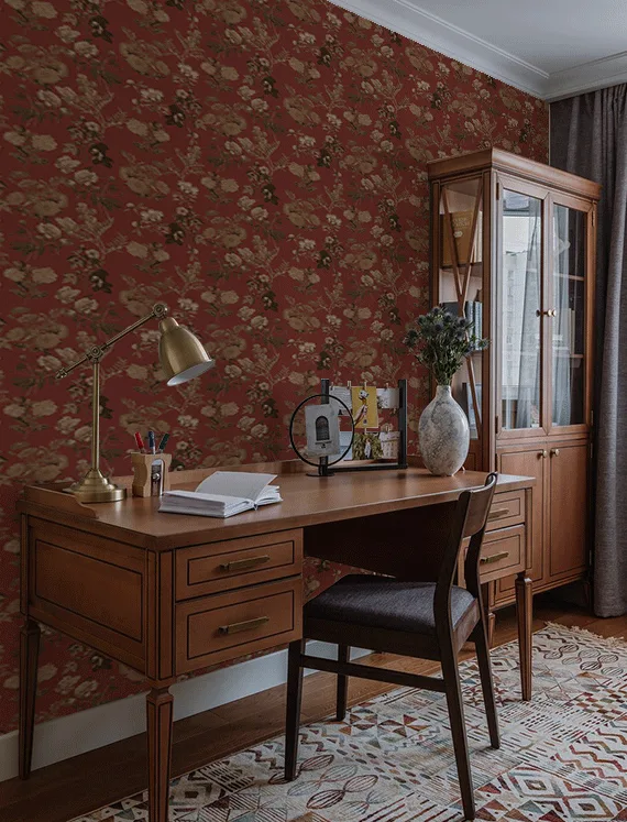 A bold celebration of English floral elegance, this wallpaper features repeating
