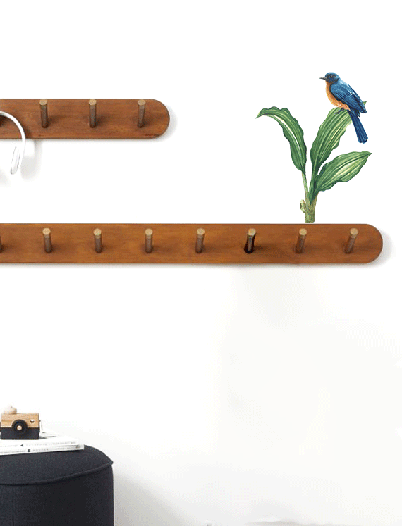 Perched gracefully on tropical greens, this vibrant bluebird decal adds a pop of colour and a sense of gentle wilderness to any wall.