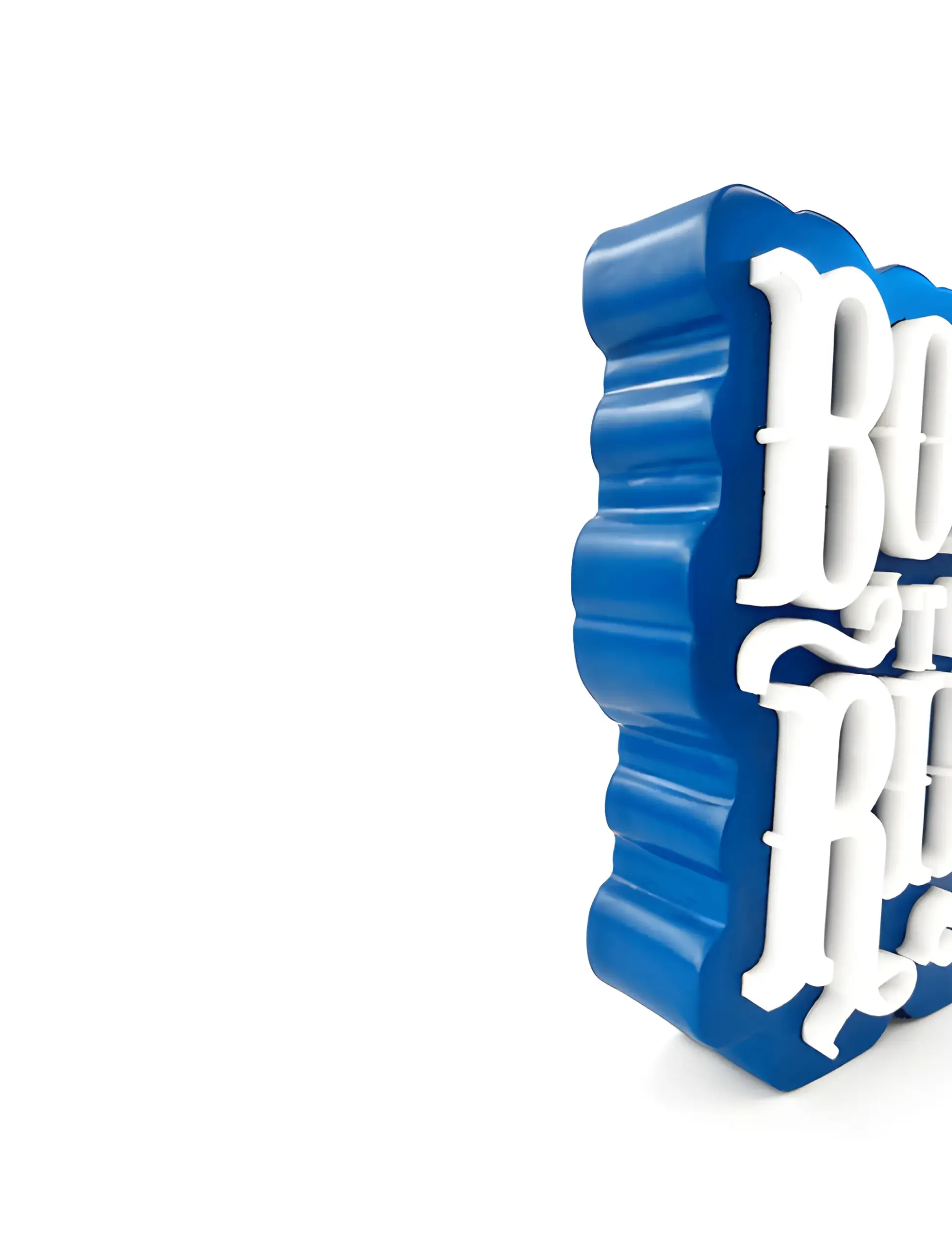 Smooth matte surface with precise, layered lettering in premium acrylic.