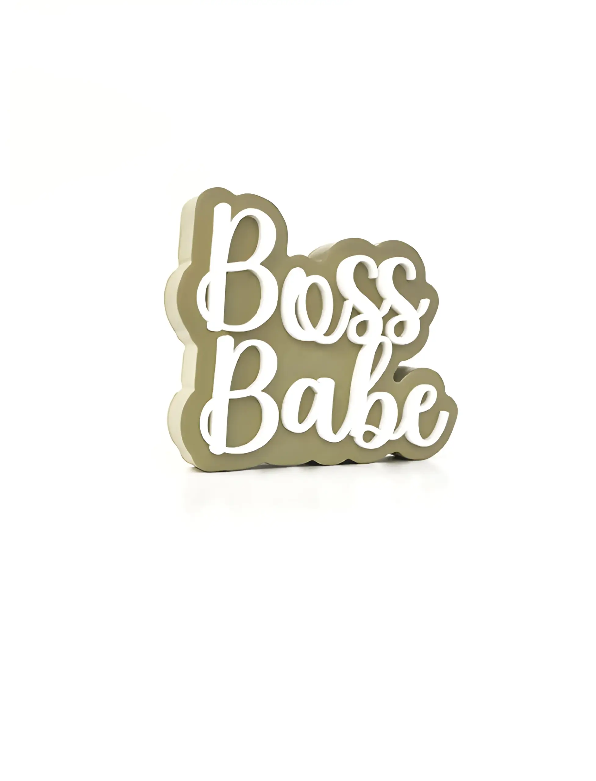 Smooth matte surface with precise, layered lettering in premium acrylic.