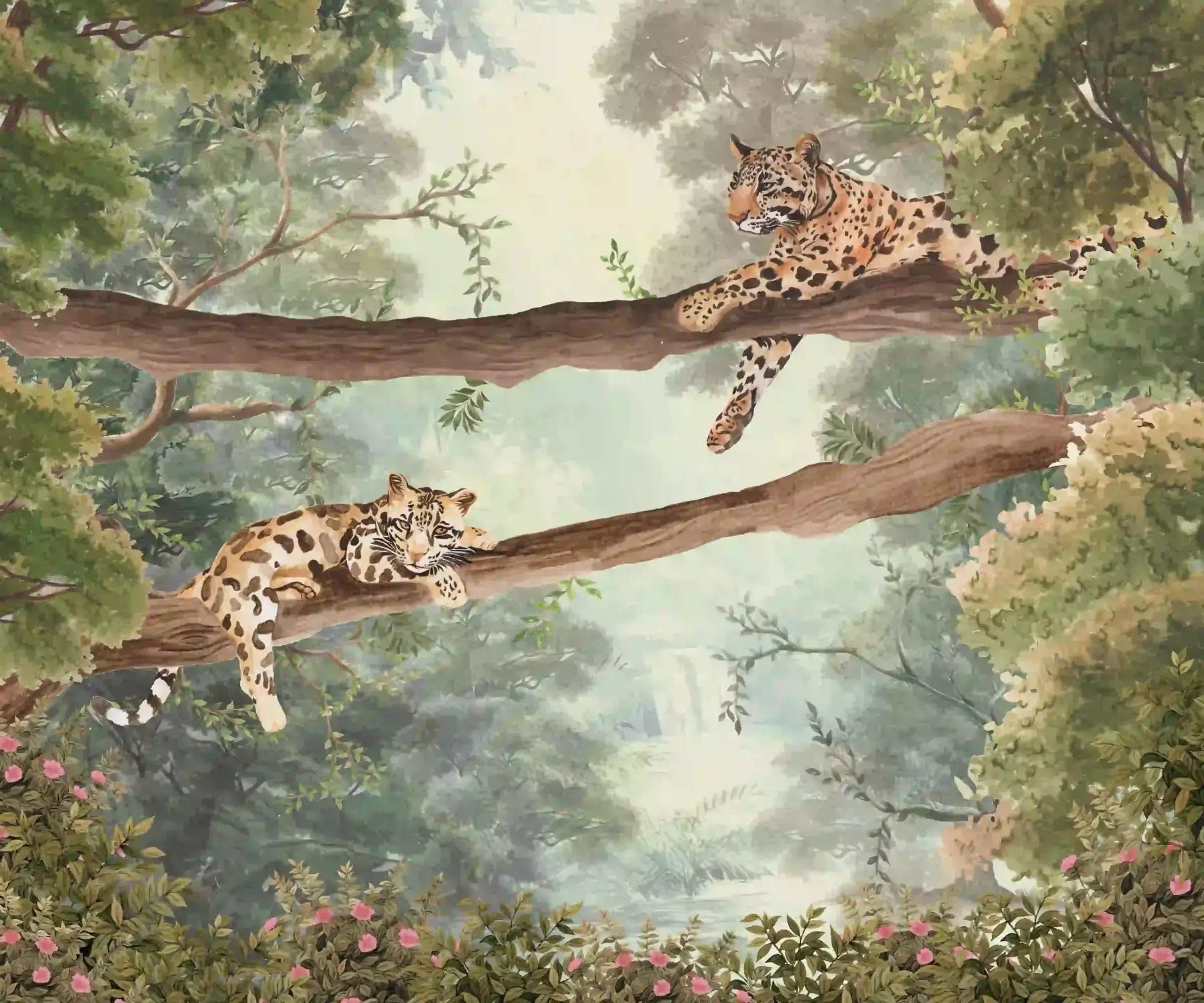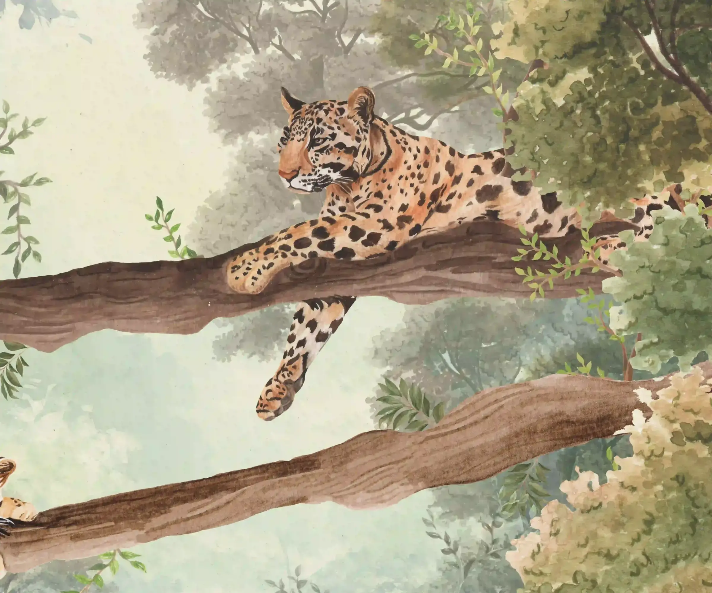 An immersive mural, creating a sense of quiet strength and depth within a richly layered landscape.