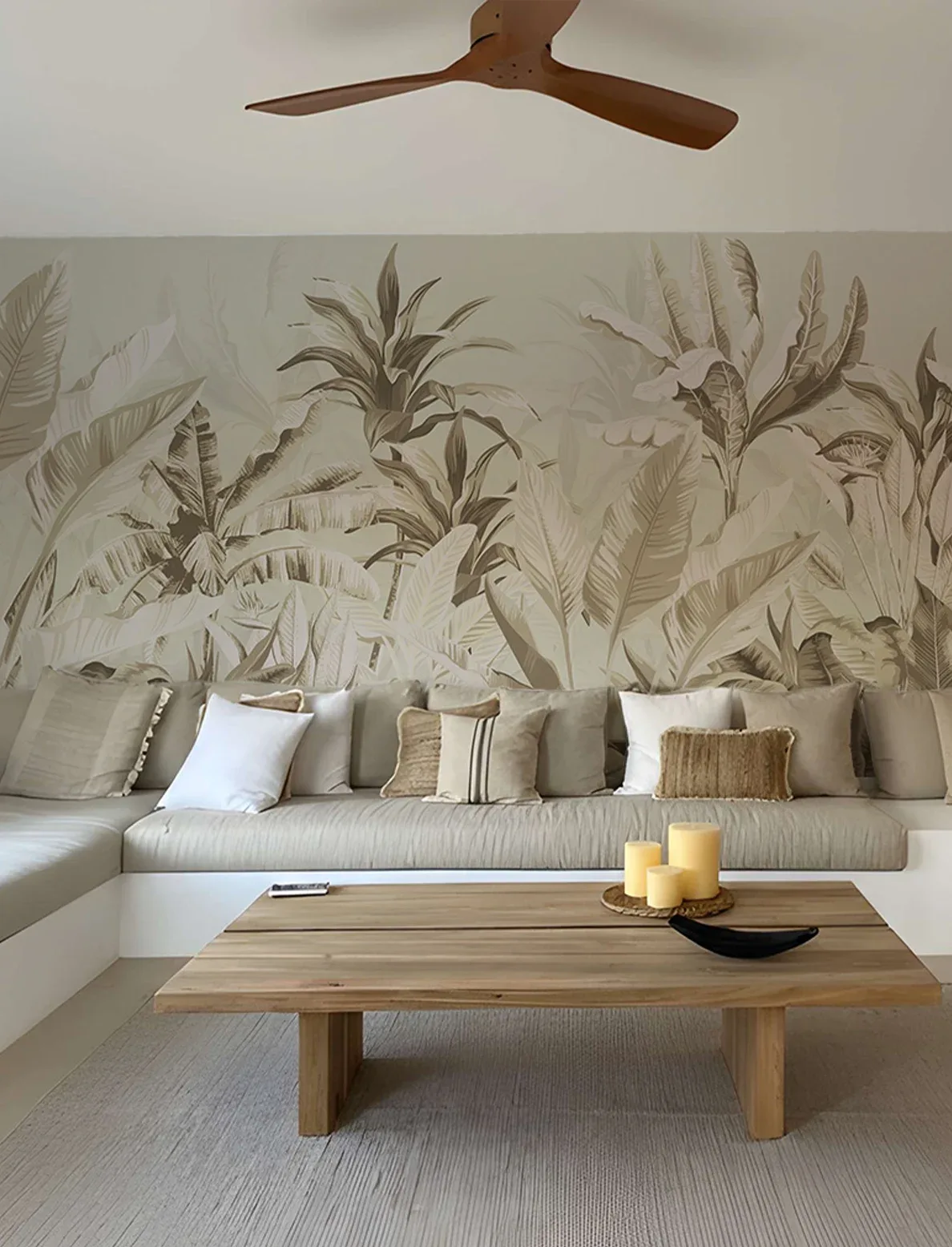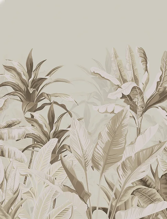 Vintage flair meets tropical vitality in this calming yet colorful wallpaper, offering a daily dose of nature’s uplifting beauty.
