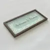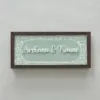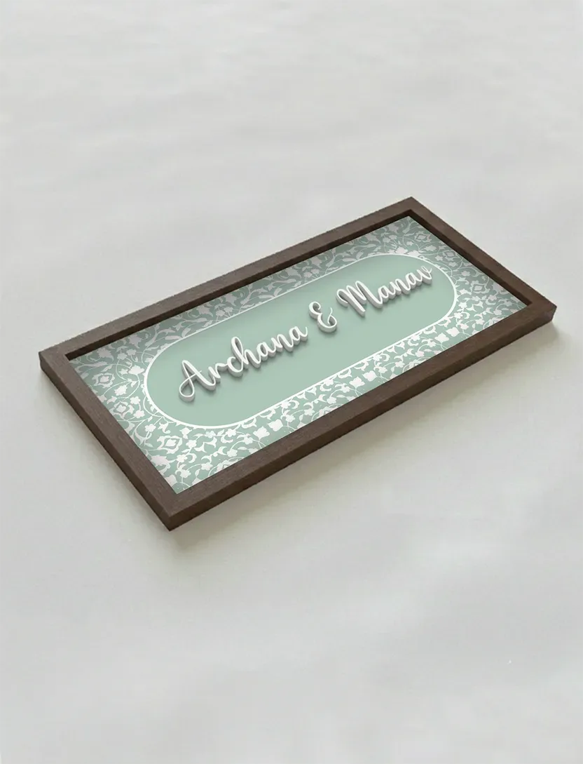 A soft light mint green base with intricate white florals creates a fresh, modern look. This elegant nameplate brings subtle charm and contemporary sophistication to any doorway.