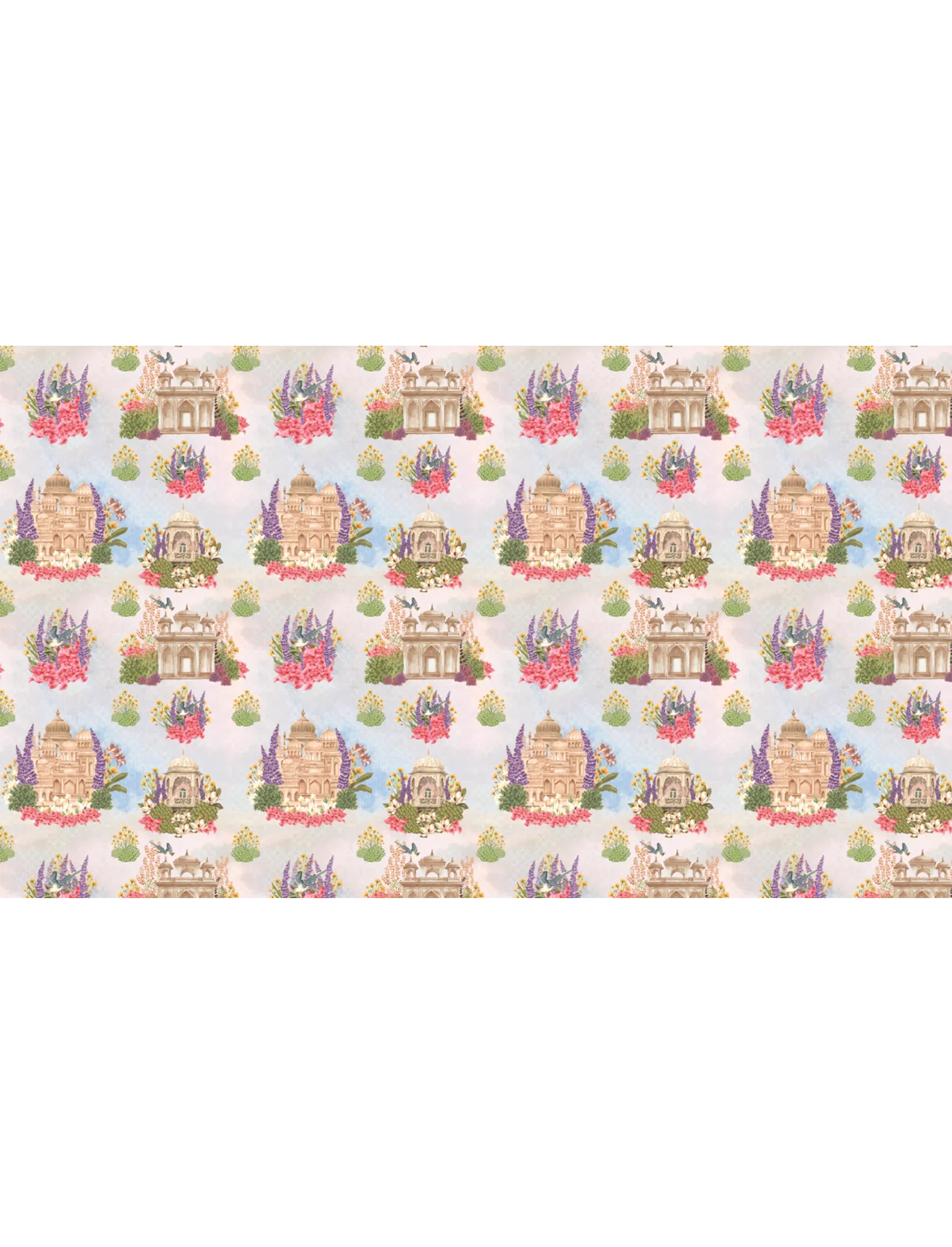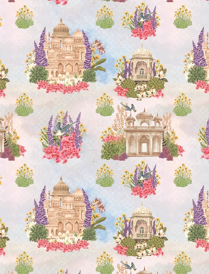 Grand yet intricate, this floral and architectural repeat blends blooming forms with structured silhouettes -a layered composition that brings timeless elegance and palace-like depth to your walls.