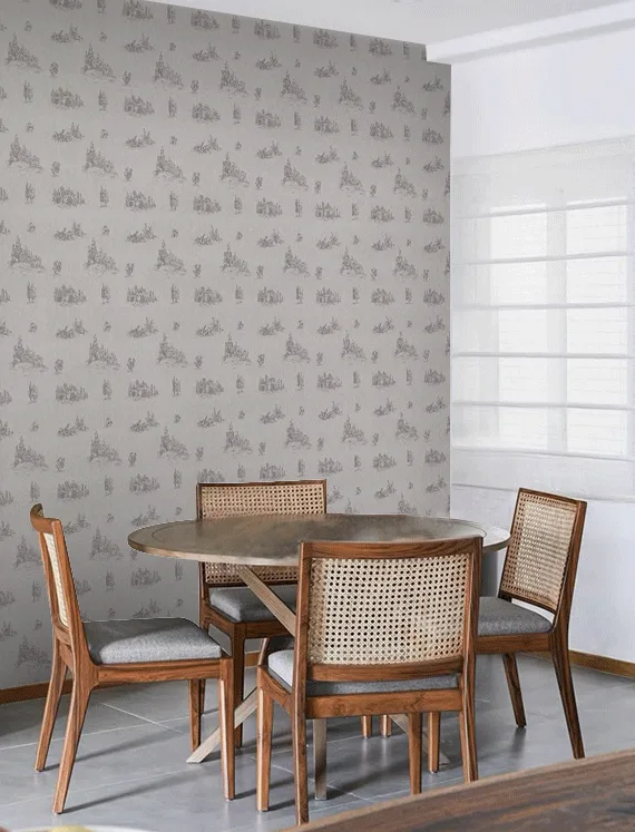 Echoing the fluid grace of brush and ink, this wallpaper fuses vintage charm with contemporary design.