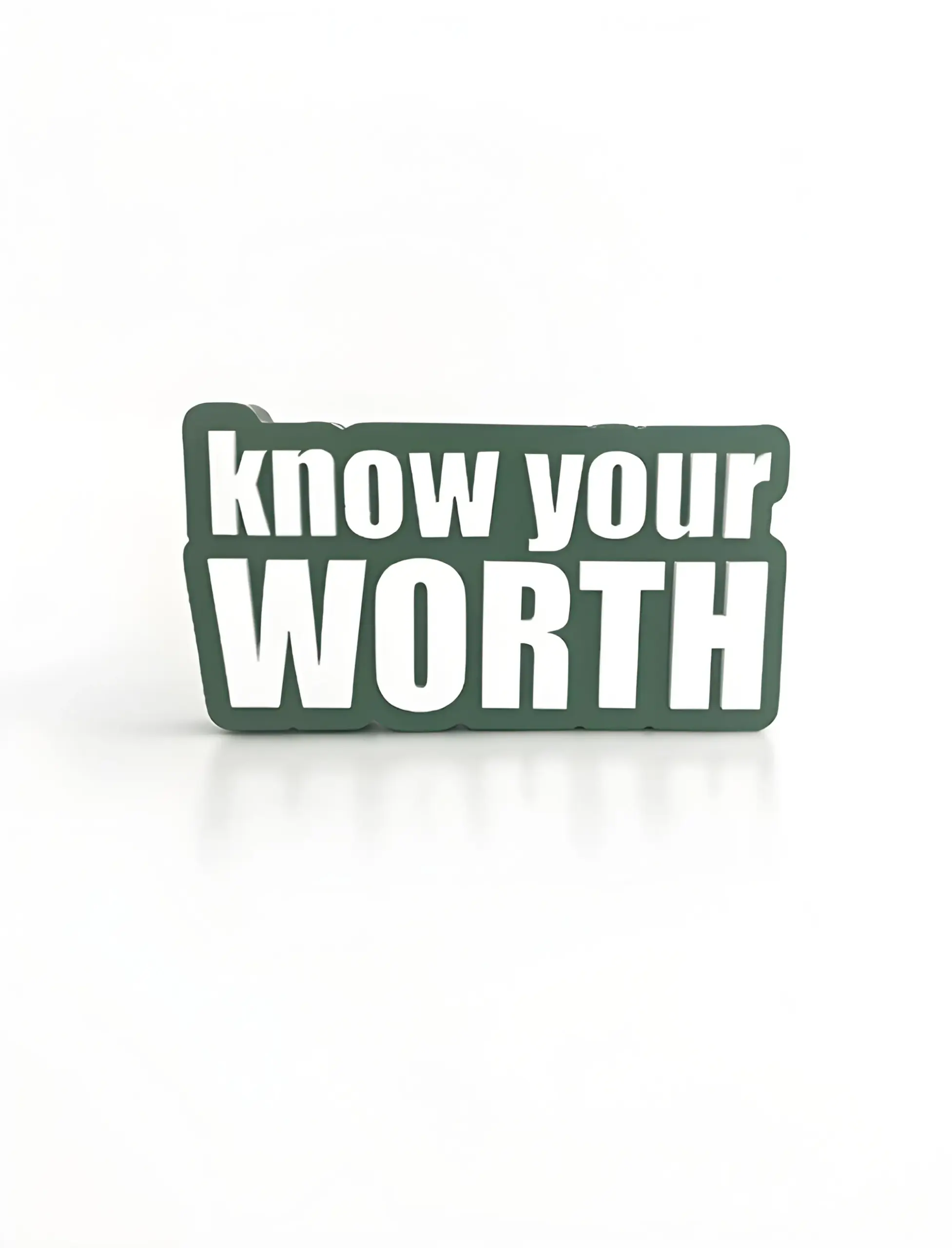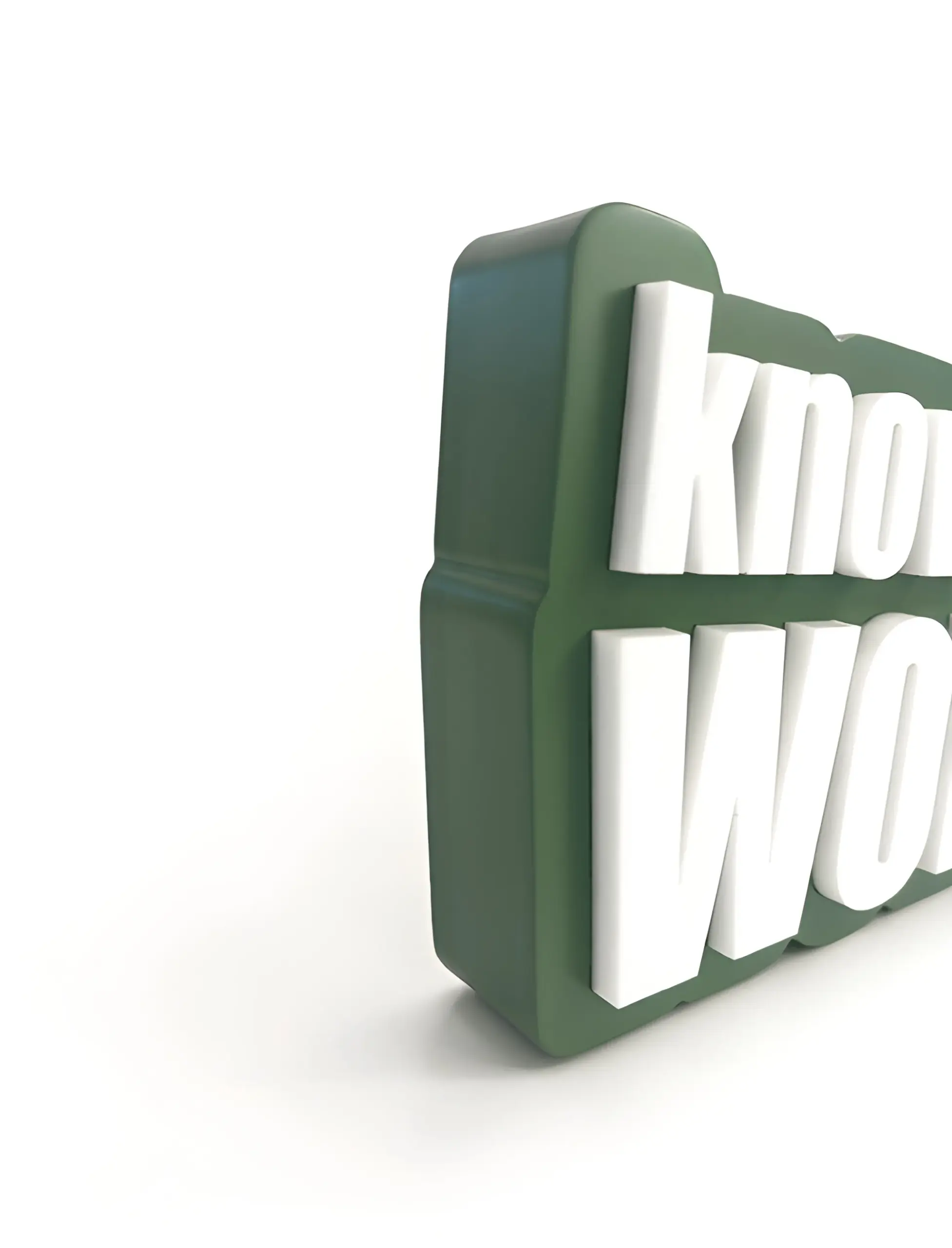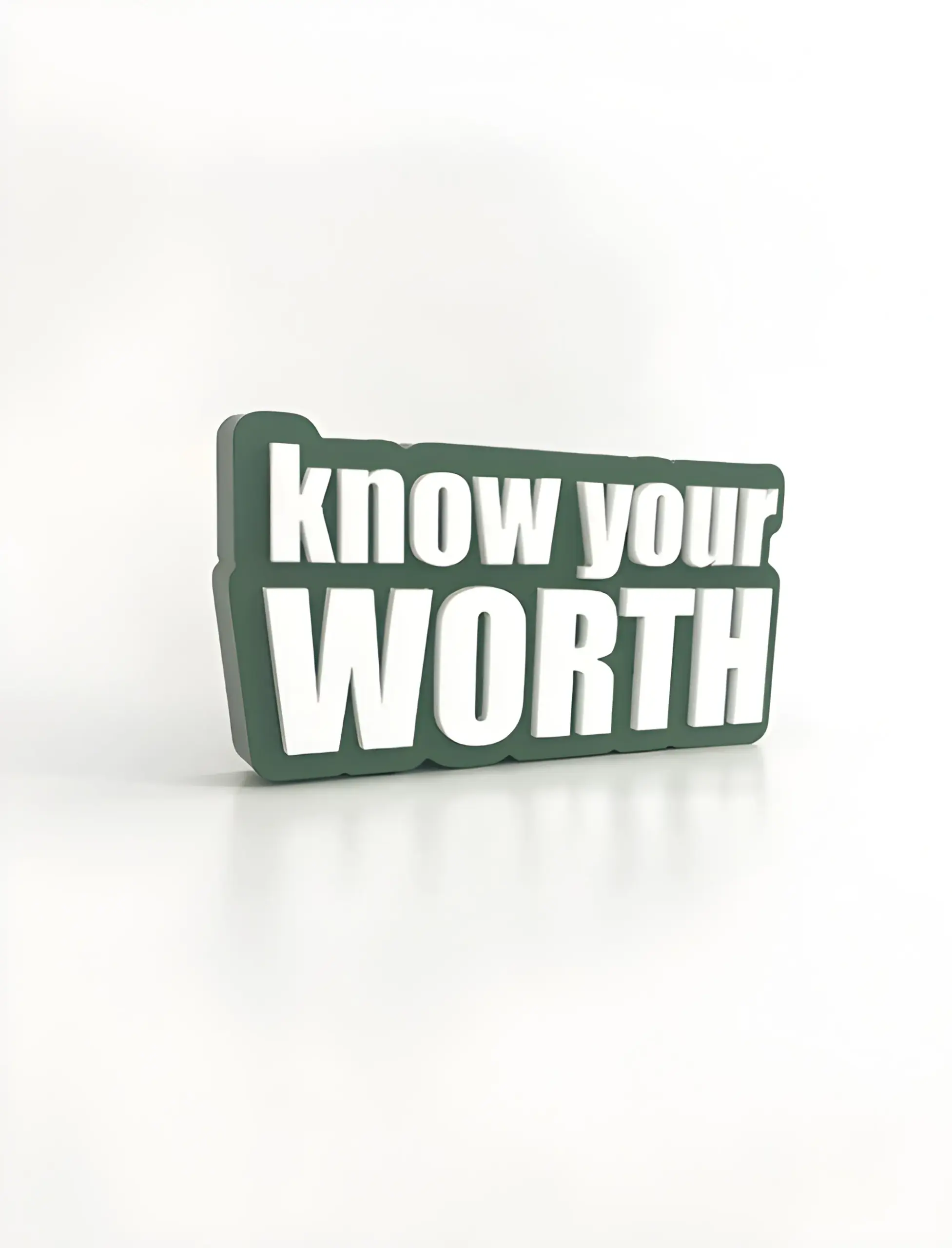 Smooth matte surface with precise, layered lettering in premium acrylic.