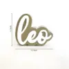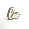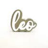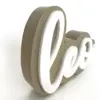 Laser-cut acrylic letters are used for a clean, modern aesthetic with a tactile dimension