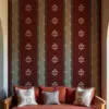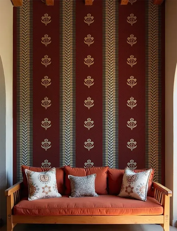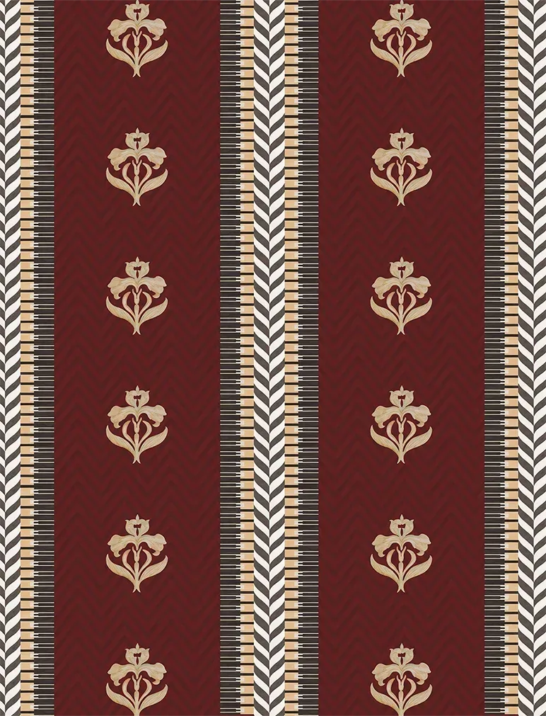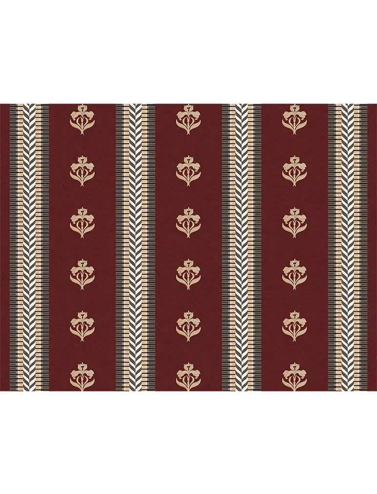 A bold, opulent maroon stripe adorned with intricate traditional motifs and geometric patterns, exuding timeless elegance and regal charm.