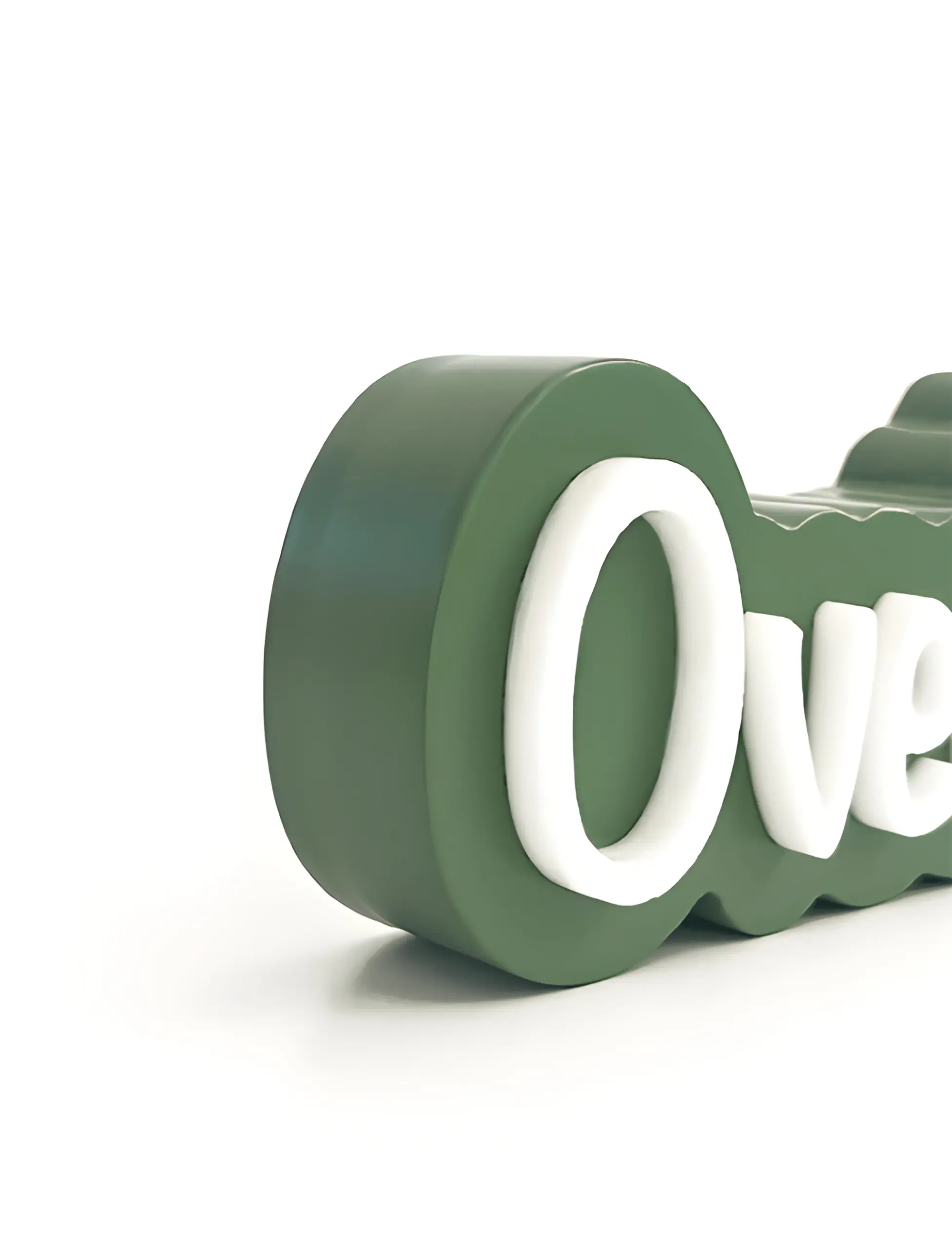 Smooth matte surface with precise, layered lettering in premium acrylic.
