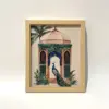 A poised peacock framed by lush greens and jharokha-style windows — this print celebrates elegance, pride, and the poetry of royal gardens.