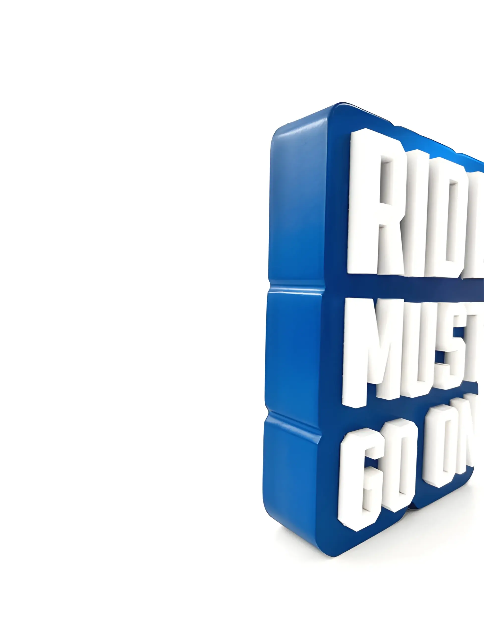 Smooth matte surface with precise, layered lettering in premium acrylic.