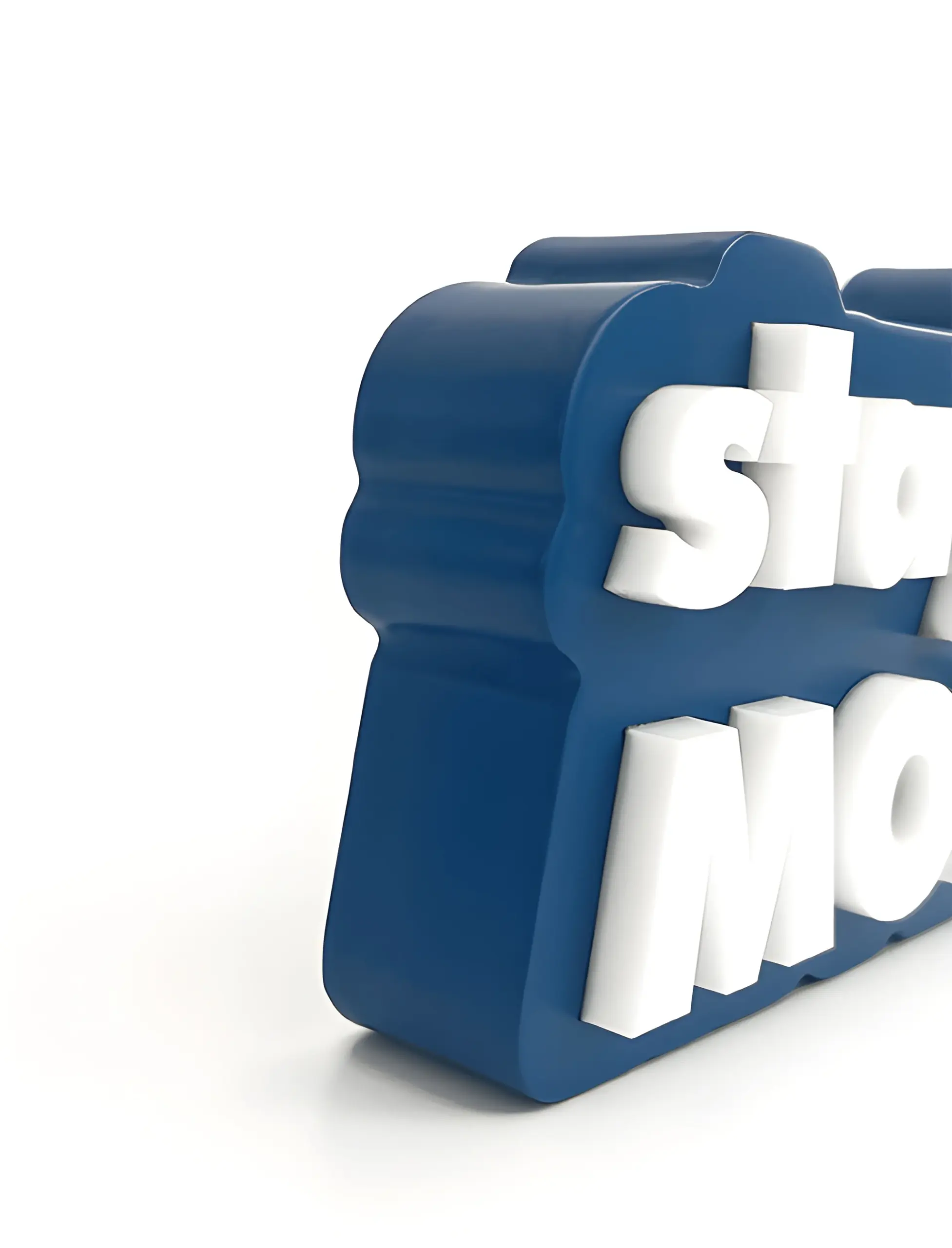 Smooth matte surface with precise, layered lettering in premium acrylic.