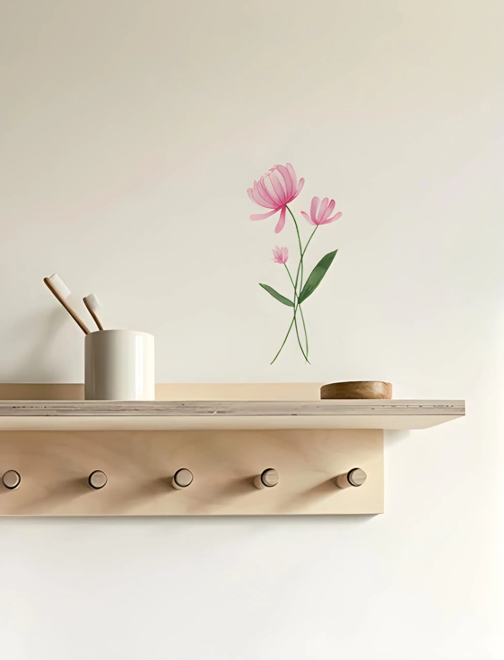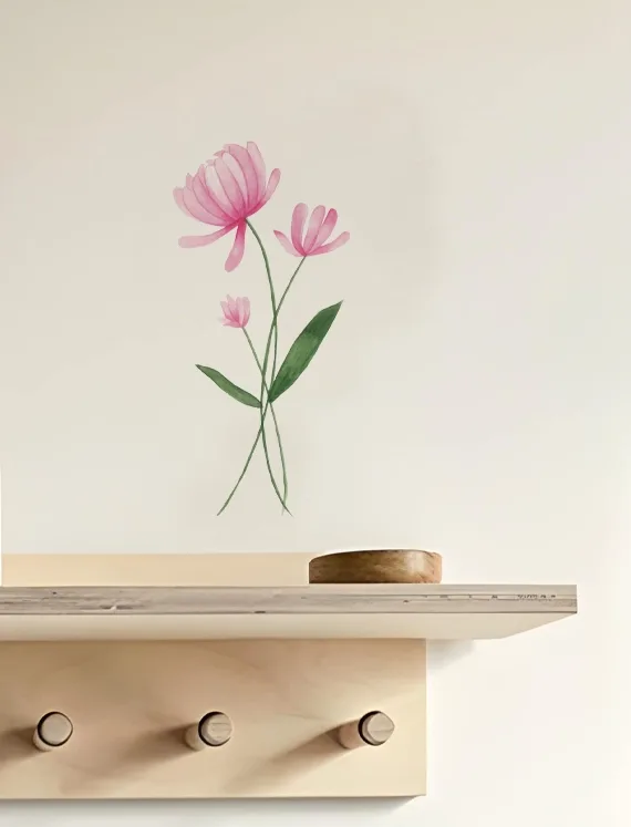 Delicate yet eye-catching, this trio of blush pink blooms with slender stems rises in soft harmony – a charming accent that adds a touch of freshness and gentle color to any wall.