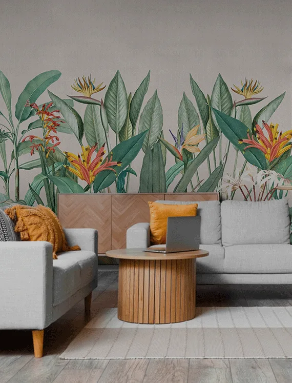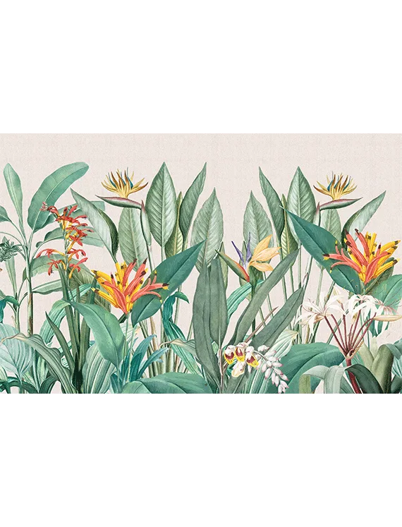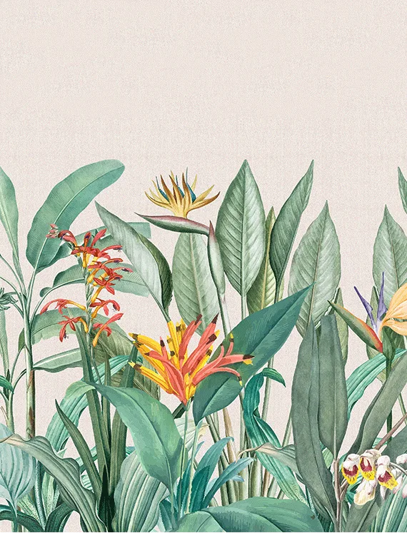 This wallpaper is a lush celebration of tropical beauty, where rich textures and colorful flora create the feeling of an exotic resort.