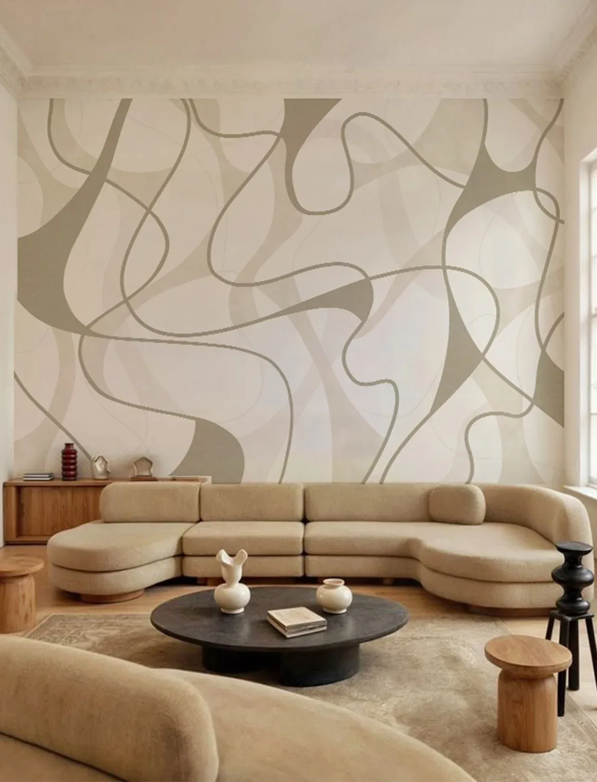 Large abstract forms layered and intersecting in a fluid composition – a bold, contemporary design that plays with scale, depth, and visual intrigue.
