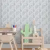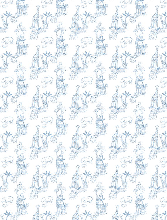 In delicate pastel linework, giraffes, hippos, flamingos, and elephants wander through leafy palms and open savannas. Minimalist and airy, the design feels like a hand-drawn safari sketchbook. Perfect for dreamers and animal lovers alike, this wallpaper adds a serene, softly adventurous tone to the space, modern, monochrome, and gently whimsical.